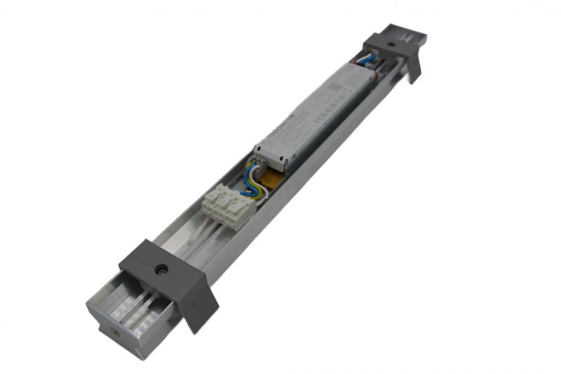 Andere Befestigungsmöglichkeiten (Magnete, Federn oder verkleben) nach Absprache umsetzbar. Längen einzügig bis max. 3m Lichteinsatz Abdeckung Klar, Satiniert auf Anfrage